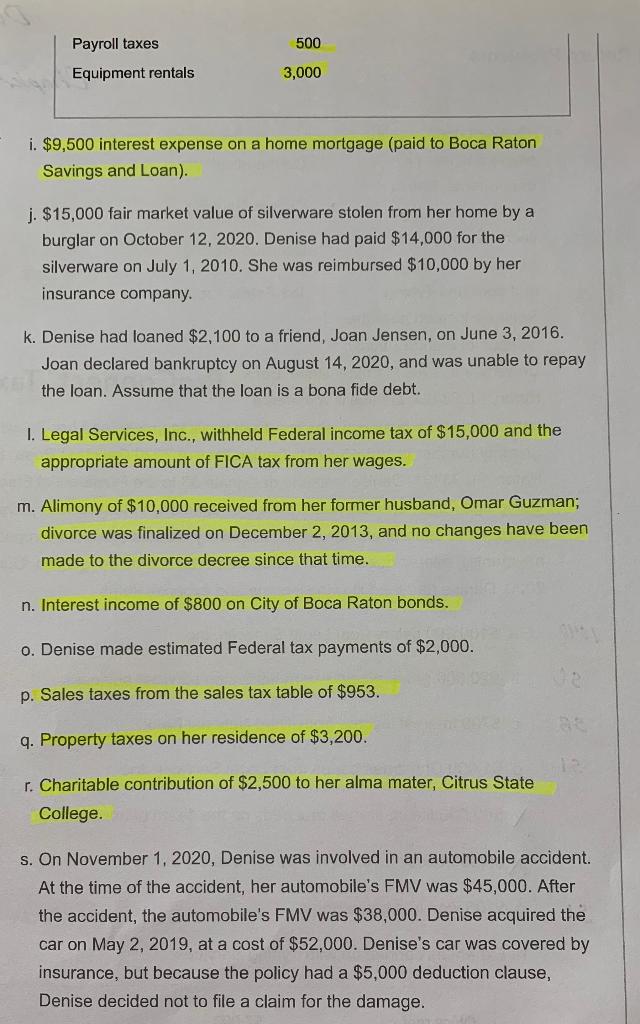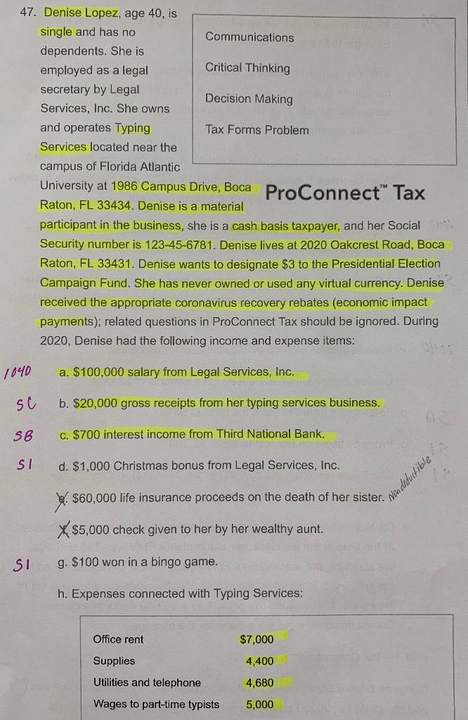 Solved Expense Items Denise Lopez Age 40 Is Single And Chegg Com